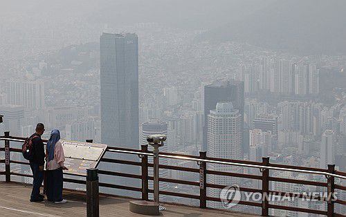 (부산=연합뉴스) 강선배 기자 = 미세먼지 농도가 '나쁨' 수준을 보인 27일 오후 부산 황령산 전망대(서면방면)에서 바라본 도심이 뿌옇게 보인다. 2026.3.27 sbkang@yna.co.kr ▶제보는 카카오톡 okjebo ▶연합뉴스 앱 지금 바로 다운받기~ ▶네이버 연합뉴스 채널 구독하기 <저작권자(c) 연합뉴스, 무단 전재-재배포, AI 학습 및 활
