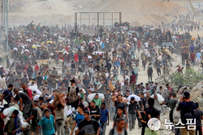 [가자 로이터=뉴스핌] 장일현 특파원 = 지난 1일(현지시간) 팔레스타인 가자지구의 한 중부 지역에서 주민들이 미국이 지원하는 가자인도주의재단(GFF)이 배포한 구호물품을 받은 뒤 집으로 돌아가고 있다. 2025.08.04. ihjang67@newspim.com 저작권자(c) 글로벌리더의 지름길 종합뉴스통신사 뉴스핌(Newspim), 무단 전재-재배포 금지