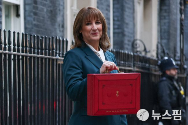 [사진] 리브스 英 재무장관, 빨간색 예산 가방 들고 의회로