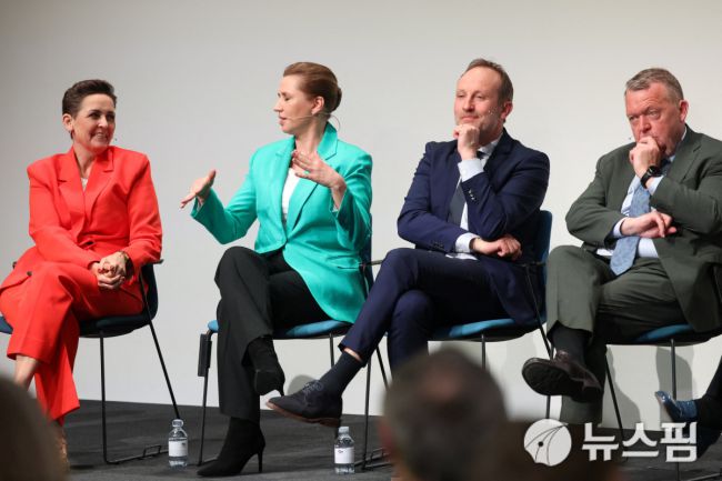 [코펜하겐=뉴스핌] 장일현 특파원 = 25일(현지 시간) 덴마크 코펜하겐에서 열린 총선 후 정당 대표 토론회에 참석한 중도와 중도좌파 대표 인사들. 왼쪽부터 중도좌파인 사회주의인민당 피아 올센 뒤르 대표, 중도좌파인 사회민주당 소속의 메테 프레데릭센 현 총리, 중도인 사회자유당의 마르틴 리데고르 대표, 중도인 중도당 소속의 라스 뢰케 라스무센 외무장관. 덴