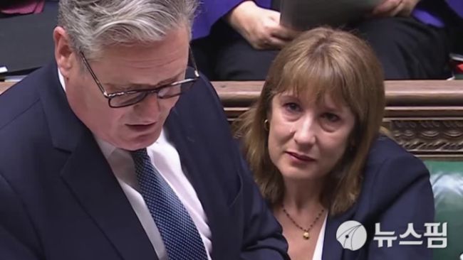 [런던 로이터=뉴스핌] 장일현 특파원 = 레이철 리브스(오른쪽) 영국 재무장관이 2일(현지시간) 의회에서 키어 스타머 총리가 매주 수요일 열리는 '총리 질의(PMQ)' 시간에 발언하는 동안 뒷자리에 앉아 눈물을 흘리고 있다. 이 자리에서 스타머 총리는 리브스 장관에 대한 지지와 유임 의사를 분명하게 밝히지 않았다. 재무장관실은 이후 "리브스 장관이 눈물을