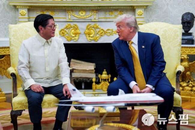 [워싱턴=로이터 뉴스핌]김근철 기자=도널드 트럼프 미국 대통령(오른쪽)이 22일(현지 시간) 백악관에서 페르디난드 마르코스 주니어 필리핀 대통령과 정상회담을 하면서 대화하고 있다. 2025.07.23 kckim100@newspim.com 저작권자(c) 글로벌리더의 지름길 종합뉴스통신사 뉴스핌(Newspim), 무단 전재-재배포 금지