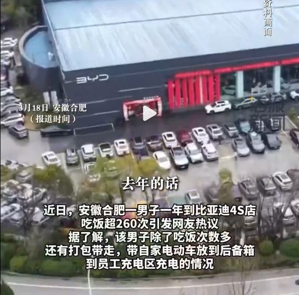 [서울신문 나우뉴스] 중국의 한 남성이 차량 구입 후 대리점의 ‘무료 서비스’를 받기 위해 1년동안 260차례 방문해 논란이 되고 있다. 웨이보 캡처 중국에서 한 남성이 차 1대를 산 뒤 해당 대리점을 1년에 260번 이상 방문했다. 오롯이 ‘식사’를 하기 위해서였고 시간이 여의치 않을 때는 빈 용기를 가져와 포장까지 해갔다. 대리점의 ‘무료 서비스’를 이