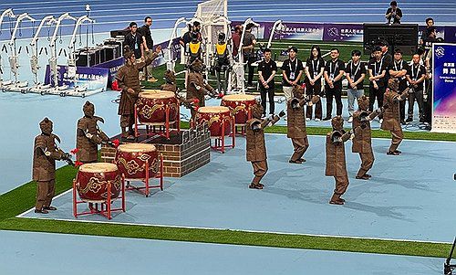 (베이징=연합뉴스) 정성조 특파원 = 15일 중국 베이징 국가스피드스케이팅홀에서 열린 '세계 휴머노이드 로봇 운동회' 단체 댄스 부문에 참가한 베이징무도학원·후베이광구둥즈 연합팀의 '병마용' 로봇들이 군무를 펼치고 있다. 2025.8.15 xing@yna.co.kr ▶제보는 카카오톡 okjebo ▶연합뉴스 앱 지금 바로 다운받기~ ▶네이버 연합뉴스 채널 구