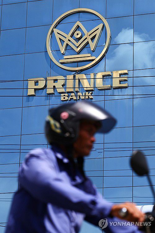 (프놈펜=연합뉴스) 서대연 기자 = 캄보디아에서 한국인 납치ㆍ감금이 잇따라 발생하며 정부가 대응에 나선 가운데 17일(현지시간) 캄보디아 최대 범죄단지로 꼽혔던 '태자단지' 운영 등 조직적 범죄의 배후로 알려진 프린스그룹에서 운영하는 은행의 모습. 프린스그룹과 그 회장인 천즈는 캄보디아 등지를 근거지로 삼아 활동하며 전 세계 피해자들의 돈을 뜯어내고 인신매