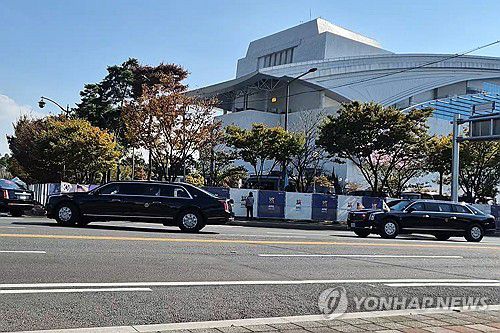 (경주=연합뉴스) 손대성 기자 = 도널드 트럼프 미국 대통령이 29일 전용 리무진인 '더 비스트'를 타고 '아시아태평양경제협력체(APEC) CEO 서밋' 행사장인 경주예술의전당에 도착하고 있다. 2025.10.29 sds123@yna.co.kr ▶제보는 카카오톡 okjebo ▶연합뉴스 앱 지금 바로 다운받기~ ▶네이버 연합뉴스 채널 구독하기 <저작권자(c)