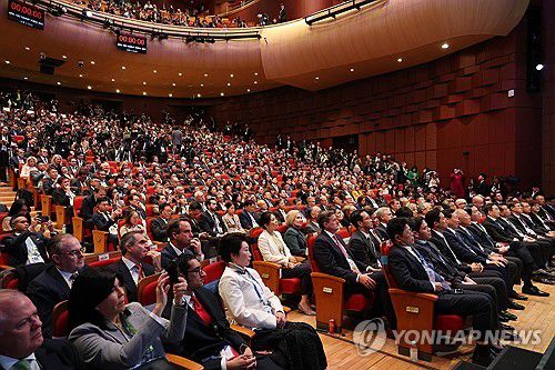(경주=연합뉴스) 2025 아시아태평양경제협력체(APEC) 정상회의 최고경영자(CEO) 서밋에 참석한 기업 관계자들이 29일 경주예술의전당에서 열린 2025 아시아태평양경제협력체(APEC) 정상회의 최고경영자(CEO) 서밋에서 도널드 트럼프 미국 대통령의 연설을 경청하고 있다. 2025.10.29 [대한상공회의소 제공. 재판매 및 DB 금지] photo@y