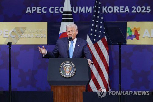 (경주=연합뉴스) 한종찬 기자 = 도널드 트럼프 미국 대통령이 29일 경북 경주 예술의전당에서 열린 '2025 아시아태평양경제협력체 최고경영자 서밋(APEC CEO SUMMIT)'에 참석해 연설하고 있다. 2025.10.29 [공동취재] saba@yna.co.kr ▶제보는 카카오톡 okjebo ▶연합뉴스 앱 지금 바로 다운받기~ ▶네이버 연합뉴스 채널 구독