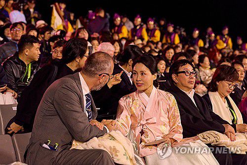 (경주=연합뉴스) 김혜경 여사가 29일 경북 경주시 월정교 특설무대에서 열린 2025년 APEC 정상회의 한복 패션쇼에서 참석자와 인사하고 있다. 2025.10.29 [대통령실 제공. 재판매 및 DB 금지] photo@yna.co.kr ▶제보는 카카오톡 okjebo ▶연합뉴스 앱 지금 바로 다운받기~ ▶네이버 연합뉴스 채널 구독하기 <저작권자(c) 연합뉴스