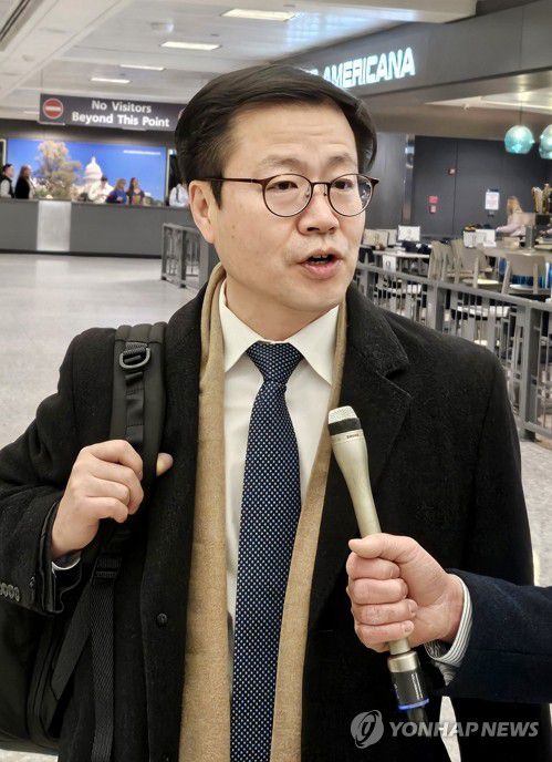 (워싱턴=연합뉴스) 홍정규 특파원 = 여한구 산업통상부 통상교섭본부장이 11일(현지시간) 워싱턴 DC 인근 덜레스 국제공항을 통해 미국으로 입국하면서 취재진의 질문에 답하고 있다. 2026.1.12 zheng@yna.co.kr ▶제보는 카카오톡 okjebo ▶연합뉴스 앱 지금 바로 다운받기~ ▶네이버 연합뉴스 채널 구독하기 <저작권자(c) 연합뉴스, 무단
