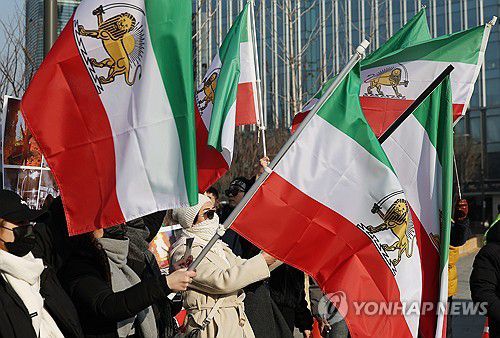 (서울=연합뉴스) 김성민 기자 = 17일 서울 종로구 광화문광장 인근에서 내한이란인 네트워크가 연 미국 정부의 이란 군사 개입 촉구 집회에서 참가자들이 팔레비 왕조 시절 이란 국기를 흔들고 있다. 2026.1.17 ksm7976@yna.co.kr ▶제보는 카카오톡 okjebo ▶연합뉴스 앱 지금 바로 다운받기~ ▶네이버 연합뉴스 채널 구독하기 <저작권자(c