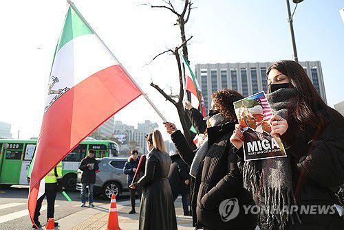 (서울=연합뉴스) 김성민 기자 = 17일 서울 종로구 광화문광장 인근에서 내한이란인 네트워크가 연 미국 정부의 이란 군사 개입 촉구 집회에서 참가자들이 팔레비 왕조 시절 이란 국기를 흔들고 있다. 2026.1.17 ksm7976@yna.co.kr ▶제보는 카카오톡 okjebo ▶연합뉴스 앱 지금 바로 다운받기~ ▶네이버 연합뉴스 채널 구독하기 <저작권자(c
