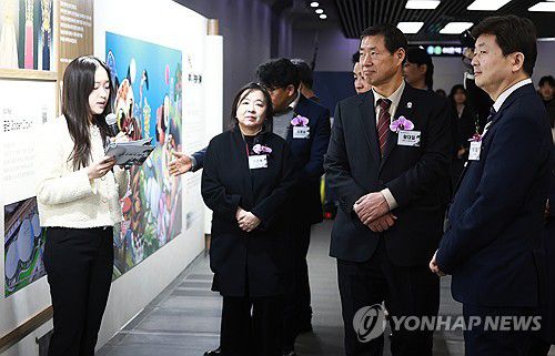 (서울=연합뉴스) 진연수 기자 = 25일 오후 서울 용산구 국립중앙박물관 지하보도 나들길에서 연합뉴스와 사이버외교사절단 반크 공동 주최로 열린 '2026 국가브랜드업 전시회' 개막식에서 황대일 연합뉴스 사장과 박기태 반크 단장 등 참석자들이 전시를 관람하고 있다. 2026.2.25 jin90@yna.co.kr ▶제보는 카카오톡 okjebo ▶연합뉴스 앱 지