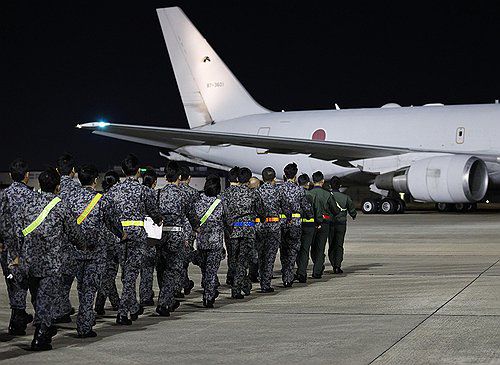 몰디브로 향하는 자위대 대원들