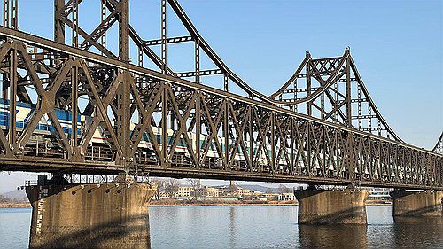 중조우의교 통과하는 평양-베이징 여객열차