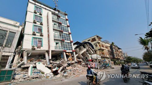 (만달레이=연합뉴스) 박의래 특파원 = 31일 미얀마 만달레이 시내에 있는 호텔 건물이 기울어져 있다. 2025.3.31. laecorp@yna.co.kr ▶제보는 카카오톡 okjebo ▶연합뉴스 앱 지금 바로 다운받기~ ▶네이버 연합뉴스 채널 구독하기 <저작권자(c) 연합뉴스, 무단 전재-재배포, AI 학습 및 활용 금지> <저작권자(c)연합뉴스. 무단전