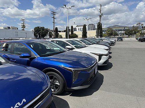 (로스앤젤레스=연합뉴스) 임미나 특파원 = 지난 3일(현지시간) 미국 로스앤젤레스(LA)의 한 기아 판매점에 신차들이 주차돼 있다. 이날부터 미국으로 수입된 자동차에는 25%의 관세가 부과되기 시작했다. 2025.4.4 mina@yna.co.kr ▶제보는 카카오톡 okjebo ▶연합뉴스 앱 지금 바로 다운받기~ ▶네이버 연합뉴스 채널 구독하기 <저작권자(c