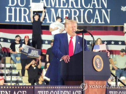 (머콤카운티[미 미시간주]=연합뉴스) 조준형 특파원 = 도널드 트럼프 미국 대통령이 29일(현지시간) 미국 미시간주 머콤 카운티에서 열린 취임 100일 기념 연설 행사에서 연설하고 있다. 2025.4.30 jhcho@yna.co.kr ▶제보는 카카오톡 okjebo ▶연합뉴스 앱 지금 바로 다운받기~ ▶네이버 연합뉴스 채널 구독하기 <저작권자(c) 연합뉴스,