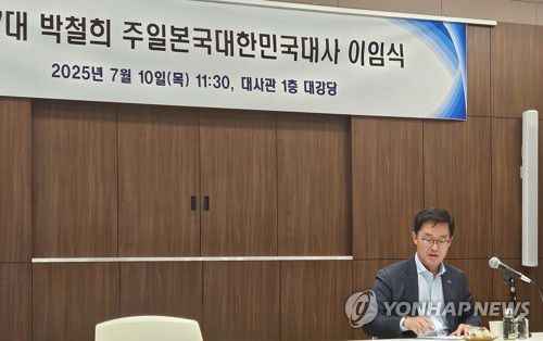 (도쿄=연합뉴스) 경수현 특파원 = 이임을 앞둔 박철희 주일 한국 대사가 10일 대사관에서 주일 특파원들과 만나 약 11개월의 재임기간에 대한 소회 등을 밝히고 있다. 2025.7.10 evan@yna.co.kr ▶제보는 카카오톡 okjebo ▶연합뉴스 앱 지금 바로 다운받기~ ▶네이버 연합뉴스 채널 구독하기 <저작권자(c) 연합뉴스, 무단 전재-재배포,