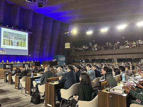 (파리=연합뉴스) 김예나 기자 = 유네스코 세계유산위원회가 12일(현지시간) 프랑스 파리 유네스코 본부에서 열린 제47차 회의에서 한국이 신청한 '반구천의 암각화'의 등재 여부를 논의하고 있다. 국보 '울주 대곡리 반구대 암각화'와 '울주 천전리 명문과 암각화'를 묶은 반구천의 암각화는 한국의 17번째 세계유산으로 등재됐다. 2025.7.12 yes@yna