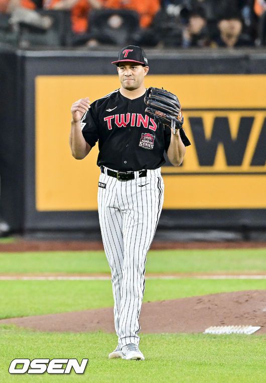 30일 대전 한화생명볼파크에서 2025 신한 SOL Bank KBO리그 포스트시즌 한국시리즈 4차전 한화 이글스와 LG 트윈스의 경기가 열렸다. 이날 경기에 한화는 와이스를, LG는 치리노스를 선발투수로 내세웠다. 1회말 1사 1루 한화 문현빈을 외야플라이 잡은 LG 치리노스가 외야를 바라보고 있다. 2025.10.30 / soul1014@osen.co.k