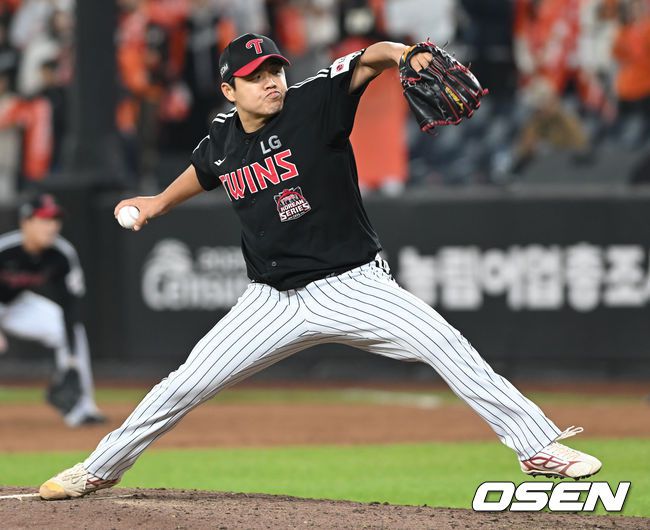 30일 대전 한화생명볼파크에서 2025 신한 SOL Bank KBO리그 포스트시즌 한국시리즈 4차전 한화 이글스와 LG 트윈스의 경기가 열렸다. 이날 경기에 한화는 와이스를, LG는 치리노스를 선발투수로 내세웠다. 7회말 LG 장현식이 투구하고 있다. 2025.10.30/spjj@osen.co.kr