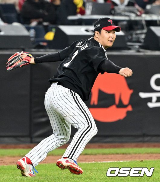 30일 대전 한화생명볼파크에서 2025 신한 SOL Bank KBO리그 포스트시즌 한국시리즈 4차전 한화 이글스와 LG 트윈스의 경기가 열렸다. 이날 경기에 한화는 와이스를, LG는 치리노스를 선발투수로 내세웠다. 7회말 1사 1루에서 LG 문보경이 한화 손아섭의 땅볼 때 송구 실책을 하고 있다. 2025.10.30 /sunday@osen.co.kr