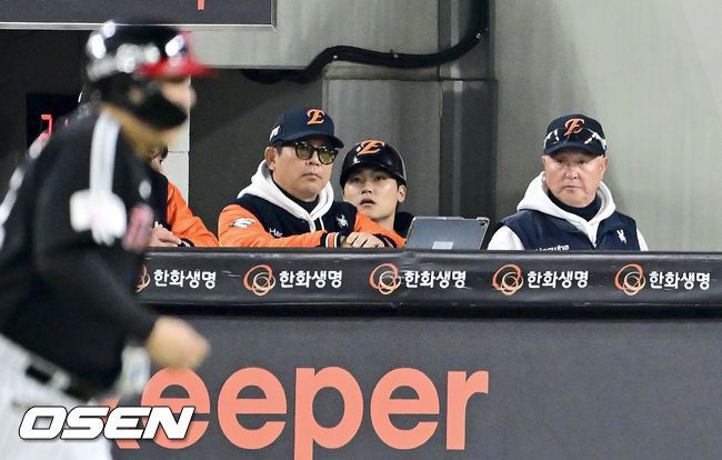 [사진]역전타 김현수 바라보는 김경문 감독-양상문 코치