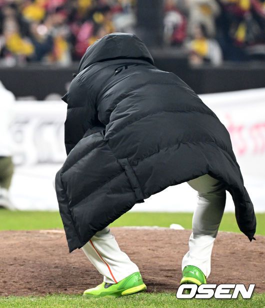 [사진]대전 한화생명볼파크 마운드 흙 가져가는 폰세