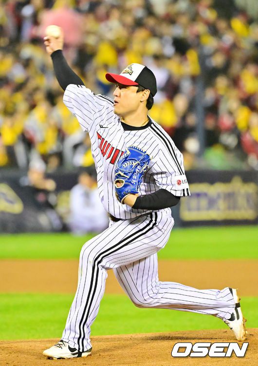 2025 시즌 통합 우승을 거머쥔 LG 트윈스가 1일 오후 서울 잠실야구장에서 ‘한국시리즈 통합우승 IN 잠실' 행사를 가졌다. 이날 행사에는 팬들을 위한 트로피 퍼포먼스, 선수단 그라운드 행진, 비하인드 스몰토크, 선수단 샴페인 샤워, 이벤트 매치 등 다양한 프로그램이 펼쳐졌다. 팬들을 위한 이벤트 경기에서 투수로 나선 LG 포수 박동원이 힘차게 공을 뿌