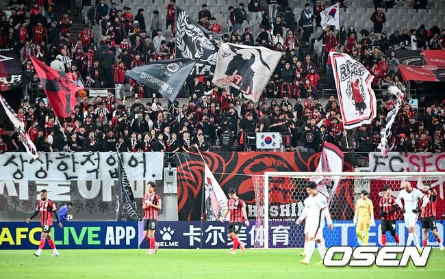 4일 오후 서울 상암동 서울월드컵경기장에서 '2025-2026 아시아축구연맹(AFC) 챔피언스리그 엘리트(ACLE) 리그' 스테이지 4차전 FC서울과 청두 룽청의 경기가 진행됐다. 서울은 ACLE 앞선 3경기에서 1승 1무 1패를 거둬 12개 팀 중 6위에 올라가 있다. 서울 축구팬들이 열띤 응원을 펼치고 있다. 2025.11.04 / rumi@osen.c