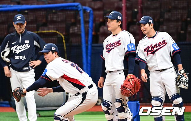 류지현 감독이 이끄는 야구 대표팀이 7일 고척스카이돔에서 훈련을 진행했다. 대표팀은 오는8일과 9일고척스카이돔에서 열리는 2025 K-베이스볼 시리즈 체코 대표팀과의 2경기를 시작으로15일과 16일 양일에 걸쳐 도쿄돔에서 일본 대표팀과 2경기를 치른다. 야구 대표팀 조형우가 훈련을 하고 있다. 2025.11.07 /cej@osen.co.kr