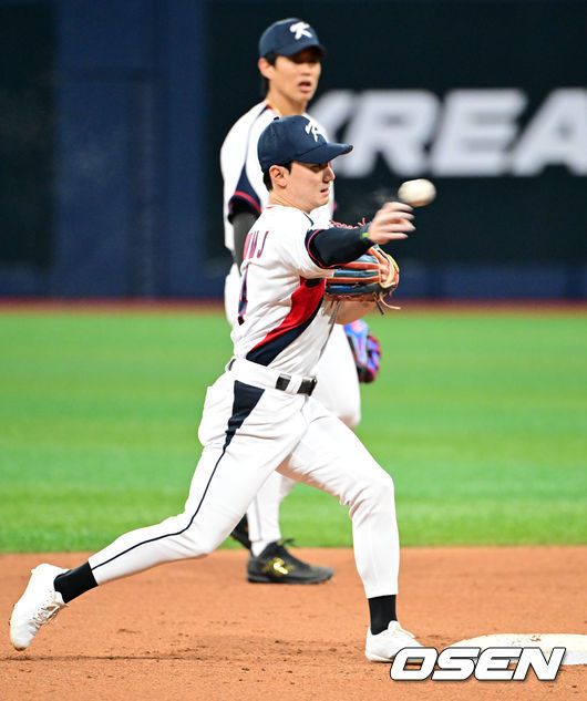류지현 감독이 이끄는 야구 대표팀이 7일 고척스카이돔에서 훈련을 진행했다. 대표팀은 오는8일과 9일고척스카이돔에서 열리는 2025 K-베이스볼 시리즈 체코 대표팀과의 2경기를 시작으로15일과 16일 양일에 걸쳐 도쿄돔에서 일본 대표팀과 2경기를 치른다. 야구 대표팀 신민재가 훈련을 하고 있다. 2025.11.07 /cej@osen.co.kr