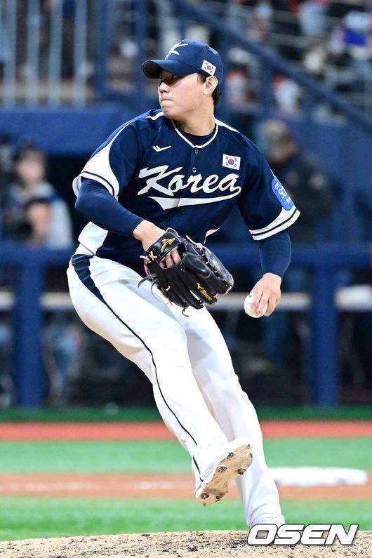 9일 서울 구로구 고척스카이돔에서 ‘2025 NAVER K-BASEBALL SERIES’ 대한민국 야구 대표팀과 체코 야구 대표팀의 평가전이 열렸다. 한국은9일 2025 K-베이스볼 시리즈 체코 대표팀과의 경기에 이어 오는15일과 16일 양일에 걸쳐 도쿄돔에서 일본 대표팀과 2경기를 치른다. 7회말 마운드에 오른 한국 투수 배찬승이 힘차게 공을 뿌리고 있다