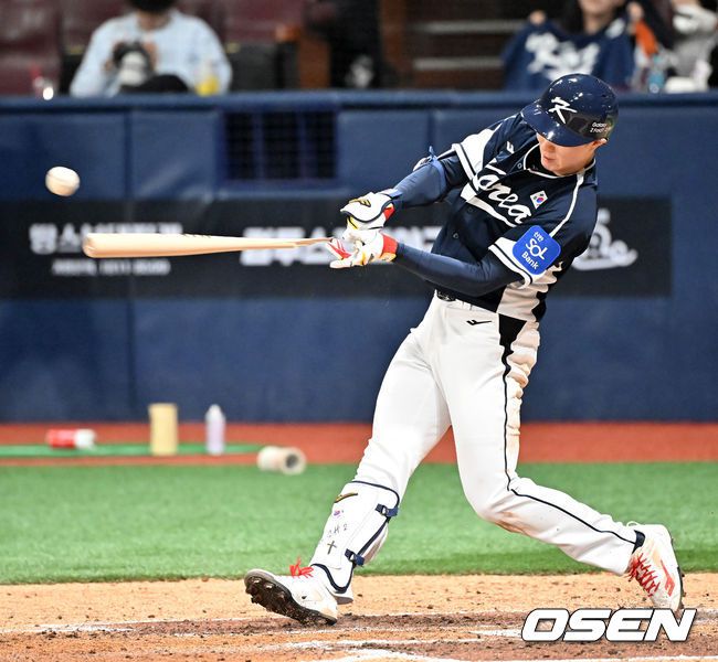 9일 서울 구로구 고척스카이돔에서 ‘2025 NAVER K-BASEBALL SERIES’ 대한민국 야구 대표팀과 체코 야구 대표팀의 평가전이 열렸다. 한국은9일 2025 K-베이스볼 시리즈 체코 대표팀과의 경기에 이어 오는15일과 16일 양일에 걸쳐 도쿄돔에서 일본 대표팀과 2경기를 치른다. 6회초 2사 주자 1,2루 한국 박성한이 파울타구를 때리며 배트가