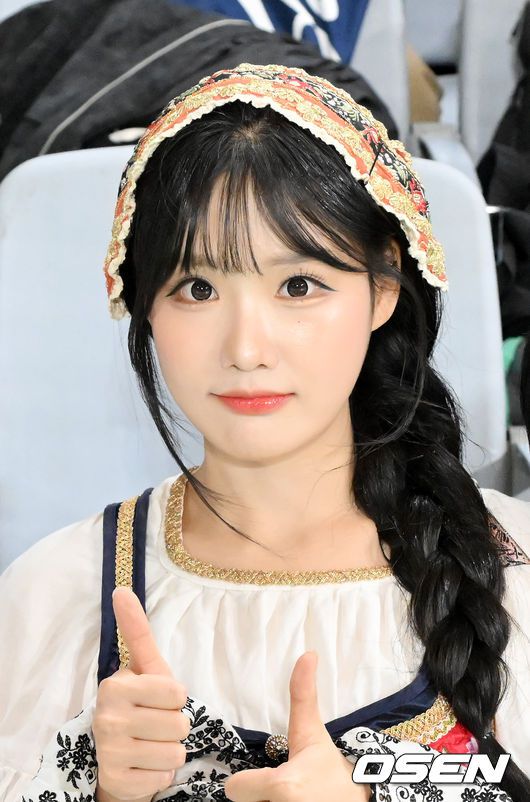 9일 서울 구로구 고척스카이돔에서 ‘2025 NAVER K-BASEBALL SERIES’ 대한민국 야구 대표팀과 체코 야구 대표팀의 평가전이 열렸다. 한국은 9일 2025 K-베이스볼 시리즈 체코 대표팀과의 경기에 이어 오는 15일과 16일 양일에 걸쳐 도쿄돔에서 일본 대표팀과 2경기를 치른다. 한국 최홍라 치어리더가 체코 전통 의상을 착용하고 응원을 하고