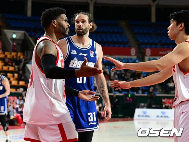 12일 서울 송파구 학생체육관에서 2025-2026 동아시아 슈퍼리그 (EASL) 서울 SK 와 홍콩 이스턴의 경기가 열렸다. SK는 1패를 안고 있고, 홍콩 이스턴은 EASL 시즌 첫 경기다. 4쿼터 SK 먼로가 파울 판정에 어필하고 있다. 2025.11.12 /cej@osen.co.kr
