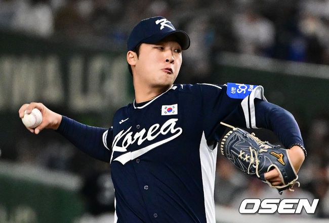 15일 일본 도쿄돔에서 ‘2025 NAVER K-BASEBALL SERIES’ 대한민국과 일본의 1차전 경기가 열렸다. 한국은 곽빈, 일본은 소타니 류헤이를 선발투수로 내세웠다. 8회말 대한민국 이민석이 역투하고 있다. 2025.11.15. /cej@osen.co.kr