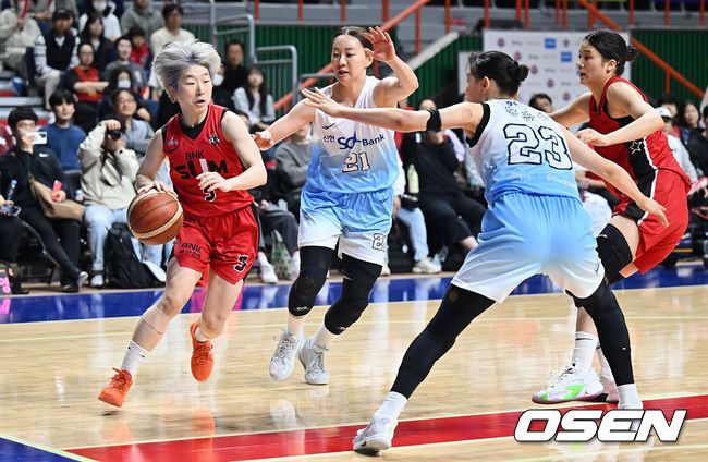 16일 부산 사직실내체육관에서 BNK금융 2025~2026 여자프로농구 부산 BNK와 인천 신한은행의 경기가 열렸다. ‘디펜딩 챔피언’ 부산 BNK와 인천 신한은행의 2025~2026 공식 개막전이다. 부산 BNK 안혜지가 느슨한 신한은행 수비를 피해 골밑돌파를 시도하고 있다. 2025.11.16 / foto0307@osen.co.kr