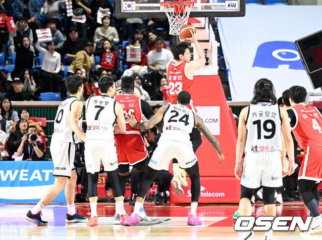 17일 오후 서울 잠실학생체육관에서 2025~2026 LG전자 프로농구 서울 SK와 수원 KT의 경기가 열렸다. 최근 5경기에서 1승에 그친 KT는 패하면 SK에 공동 5위를 허용한다. SK는 개막 2연승 후 1승 6패로 하위권으로 추락했지만, 2라운드에서 4승 2패를 기록하며 중위권 싸움에 가세했다. 4쿼터 KT 윌리엄스가 자유투를 실패하고 있다. 202