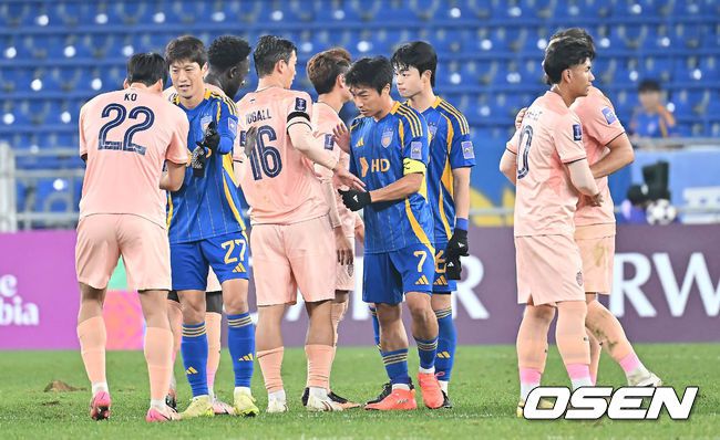 26일 울산 문수축구경기장에서 2025∼2026 아시아축구연맹 챔피언스리그 엘리트(ACLE) 리그 스테이지 5차전 울산 HD와 부리람 유나이티드 FC의 경기가 열렸다. 울산은 ACLE에서 4위권 성적을 내고도 K리그 잔류가 걸린 제주전 총력 대비로 부리람전에 힘을 쏟기 어려운 상황이다. 0-0 무승부를 기록한 양팀 선수들이 인사를 나누고 있다. 2025.1