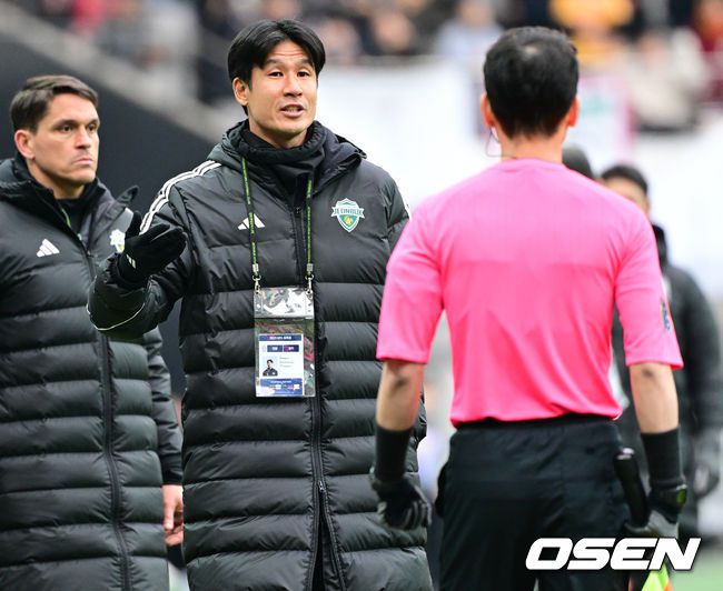 2025 하나은행 코리아컵 전북FC와 광주FC의 결승전이 6일 서울 마포구 서울월드컵경기장에서 열렸다. 시민구단 광주는 사상 첫 코리안컵 우승에 도전, 전북은 올해 K리그1 우승에 이어 두 번째 더블을 노린다. 전북 정조국 코치가 판정에 어필하고 있다. 2025.12.06 /cej@osen.co.kr