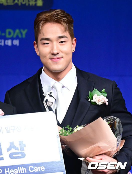 8일 오전 서울 청담동 리베라호텔에서 ‘2025 일구상 시상식’이 열렸다. 이번 일구상은 최고투수상 삼성 원태인, 최고타자상 키움 송성문, 신인왕으로 KT 안현민 등을 선정했다. KT 안현민이 신인상을 수상한 뒤 포즈를 취하고 있다. 2025.12.08 / dreamer@osen.co.kr