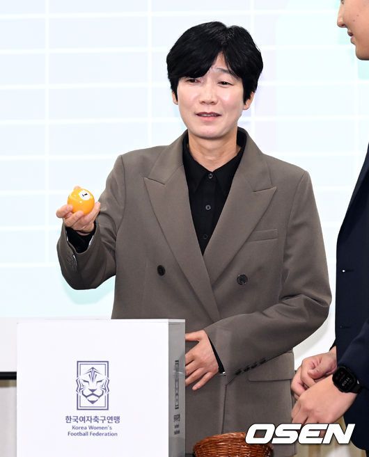 2026년도 WK리그 신인선수 선발 드래프트가 서울 송파구 올림픽파크텔에서 열렸다. 드래프트 지명은 매 라운드 당해 연도 리그 구단 성적순으로 추첨해 순서를 선정한다. 서울시청 유영실 감독이 1차지명 순서 추첨에서 1번 공을 들어보이고 있다. 2025.12.10 /cej@osen.co.kr