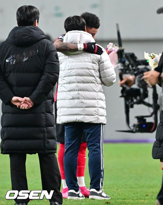 [사진]린가드, 김기동 감독과 마지막 포옹
