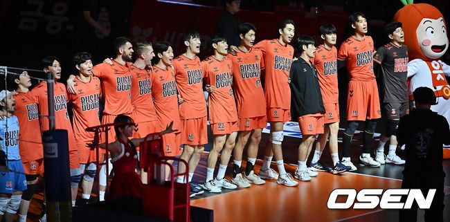 17일 부산 강서실내체육관에서 진에어 2025-2026 V리그 남자부 OK저축은행과 우리카드의 경기가 열렸다. 두 팀은 이번 시즌 만났다 하면 5세트 접전을 벌이고 있다. 이번 경기에서도 5세트 접전을 펼쳤다. OK저축은행 선수들이 5세트 접전 끝에 승리한 후 팬들과 승리의 세리머니를 하고 있다. 2025.12.17 / foto0307@osen.co.kr