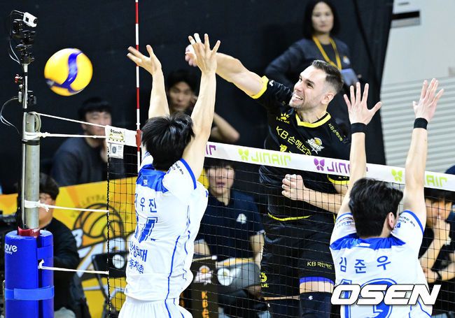 18일 경기도 의정부시 경민대학교 체육관에서 ‘진에어 2025~2026 프로배구 V리그’ 남자부 KB손해보험과 삼성화재의 경기가 열렸다. 홈팀 KB손해보험은 7승 8패 승점 22, 방문팀 삼성화재는 2승 13패 승점 7을 마크하고 있다. 1세트, KB손해보험 비예나가 공격을 시도하고 있다. 2025.12.18 / dreamer@osen.co.kr