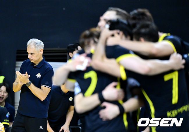 18일 경기도 의정부시 경민대학교 체육관에서 ‘진에어 2025~2026 프로배구 V리그’ 남자부 KB손해보험과 삼성화재의 경기가 열렸다. 홈팀 KB손해보험은 7승 8패 승점 22, 방문팀 삼성화재는 2승 13패 승점 7을 마크하고 있다. 2세트, KB손해보험 레오나르도 카르발류 감독이 선수들의 플레이에 박수를 보내고 있다. 2025.12.18 / dream
