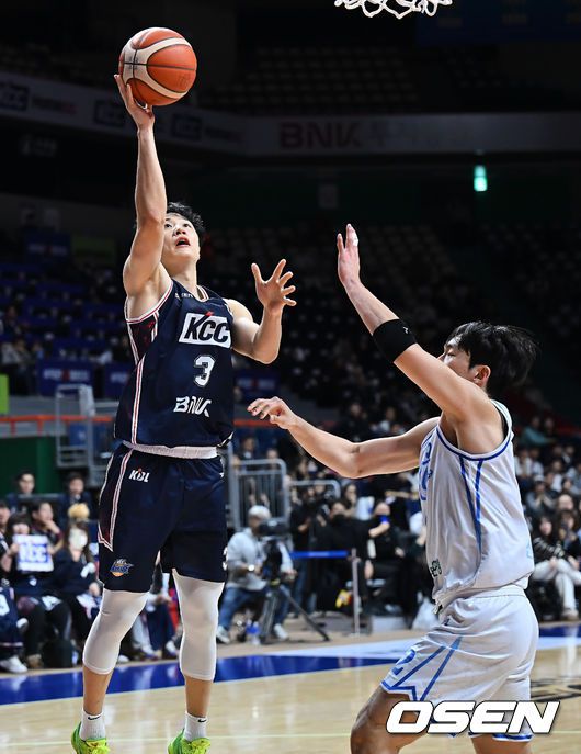 18일 부산 사직체육관에서 2025-2026 LG전자 프로농구 부산 KCC와 대구 한국가스공사의 경기가 열렸다. 지난 경기에서 복귀했던 최준용이 다시 부상으로 결장하고, 장재석까지 부상으로 이탈한 KCC는 가용 인원이 크게 줄어 한국가스공사전에서 적잖은 어려움이 예상된다. 부산 KCC 허웅이 대구 한국가스공사 신승민의 마크를 피해 골밑슛을 시도하고 있다.