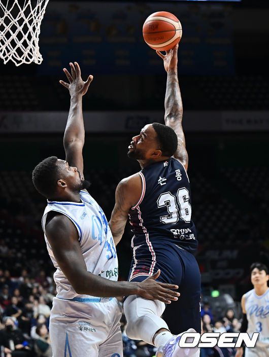 18일 부산 사직체육관에서 2025-2026 LG전자 프로농구 부산 KCC와 대구 한국가스공사의 경기가 열렸다. 지난 경기에서 복귀했던 최준용이 다시 부상으로 결장하고, 장재석까지 부상으로 이탈한 KCC는 가용 인원이 크게 줄어 한국가스공사전에서 적잖은 어려움이 예상된다. 부산 KCC 숀롱이 대구 한국가스공사 닉 퍼킨스의 마크를 피해 골밑슛을 시도하고 있다